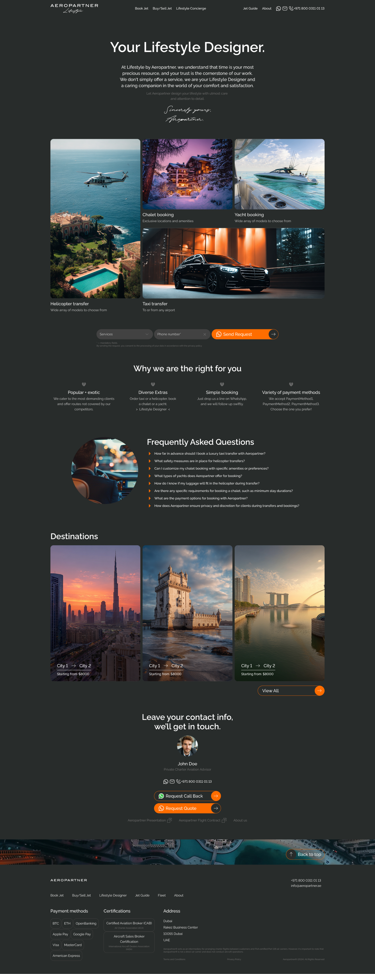 Aeropartner is a Dubai-based private jet charter platform. I was invited to upgrade the UX of their three different business directions: jet charter, jet sales, luxury add-ons. Through extensive research, prototyping, and cross-functional collaboration, I designed optimal flows and information architecture to give Aeropartner competitive advantage in the luxury travel niche.