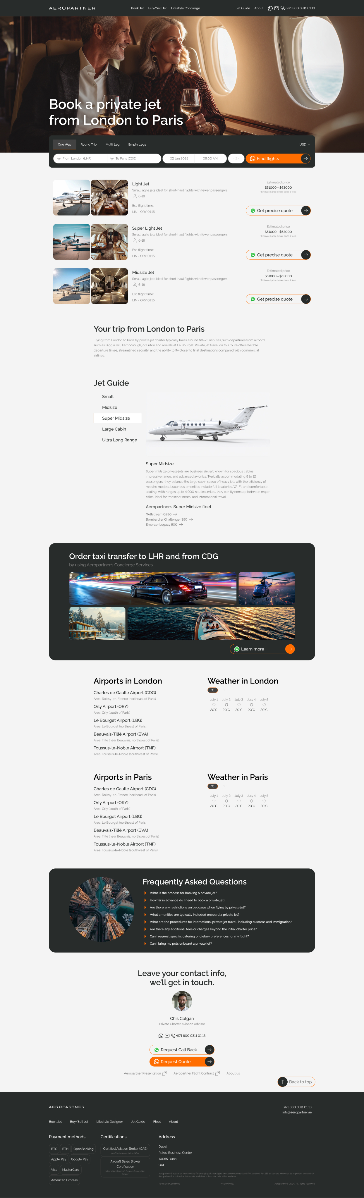 Created seamless user experience for Aeropartner’s demanding clientele, including private jet passengers and buyers.